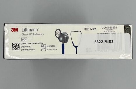 MORE DETAILS: The Littmann Classic III™ features a double-sided, dual diaphragm chestpiece for both adult and pediatric assessment.The pediatric side is also easily transformed into a traditional open bell by replacing the single-piece diaphragm with the supplied non-chill rim.The chestpiece is precision-machined into an aesthetically pleasing, less angular shape.New single-piece diaphragm instead of separate diaphragm/rim making it easier to attach and easier to clean due to the smooth unbroken surface.The stem features an open side indicator to easily identify which diaphragm is in operation.Next-generation tubing gives even longer tube life with improved resistance to skin oils, alcohol and staining.3M’s ‘Tunable Technology’ lets you easily switch from low to high frequency sounds by switching from light to firm pressure on both the adult and pediatric sides of the chestpiece.High acoustic sensitivity when performing general physical assessment.Larger ear tubes on the anatomically designed headset comfortably positioned for better sound transfer. Easy adjustment by simply squeezing or pulling apart the eartubes.Comfortable Snap-Tight soft seal eartips create an excellent acoustic seal to reduce ambient noise5 year warranty includes free repair on any manufacturing or material defects.