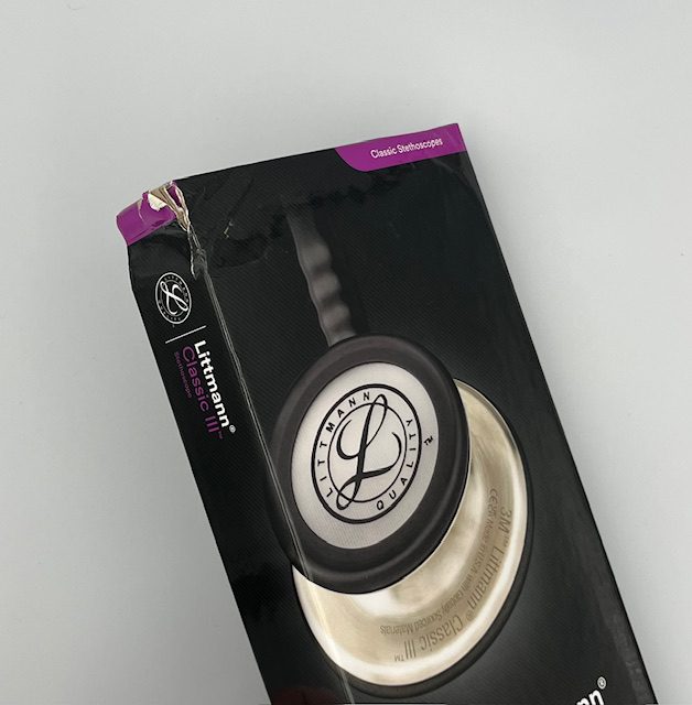 Oops! We made a mistake. Brand new, mis-engraved Littmann Classic III Stethoscope. Discounted price due to our engraving error. Stethoscope is fully functional and covered under manufacturer’s warranty. Stethoscope box has slight damage to the corner.