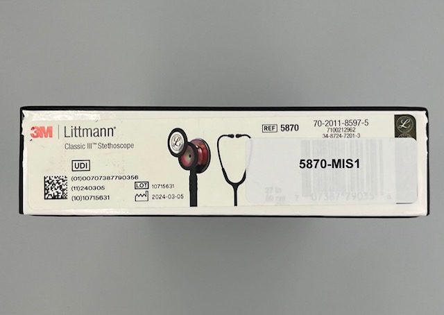MORE DETAILS: The Littmann Classic III™ features a double-sided, dual diaphragm chestpiece for both adult and pediatric assessment.The pediatric side is also easily transformed into a traditional open bell by replacing the single-piece diaphragm with the supplied non-chill rim.The chestpiece is precision-machined into an aesthetically pleasing, less angular shape.New single-piece diaphragm instead of separate diaphragm/rim making it easier to attach and easier to clean due to the smooth unbroken surface.The stem features an open side indicator to easily identify which diaphragm is in operation.Next-generation tubing gives even longer tube life with improved resistance to skin oils, alcohol and staining.3M’s ‘Tunable Technology’ lets you easily switch from low to high frequency sounds by switching from light to firm pressure on both the adult and pediatric sides of the chestpiece.High acoustic sensitivity when performing general physical assessment.Larger ear tubes on the anatomically designed headset comfortably positioned for better sound transfer. Easy adjustment by simply squeezing or pulling apart the eartubes.Comfortable Snap-Tight soft seal eartips create an excellent acoustic seal to reduce ambient noise5 year warranty includes free repair on any manufacturing or material defects.