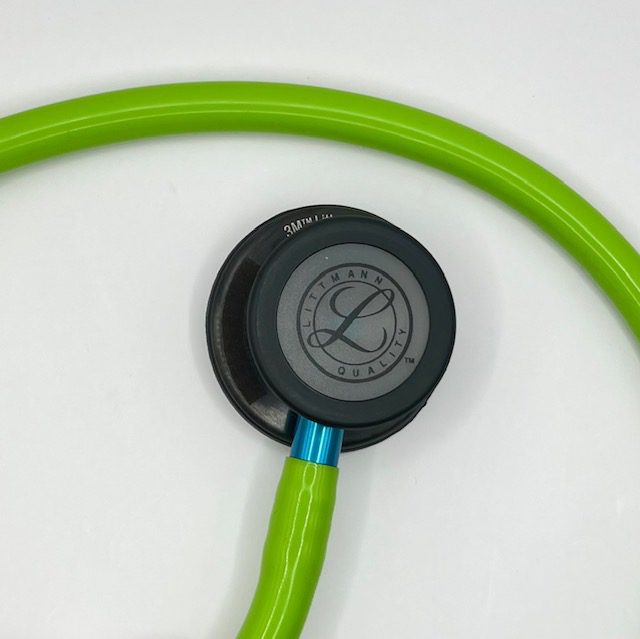 MIS-ENGRAVED 5875 3M Littmann Classic III Monitoring Stethoscope, Lime Green and Smoke w/Blue Stem (27″), 5875-MIS1