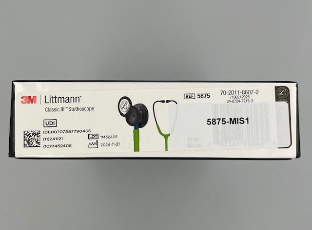 MORE DETAILS: The Littmann Classic III™ features a double-sided, dual diaphragm chestpiece for both adult and pediatric assessment.The pediatric side is also easily transformed into a traditional open bell by replacing the single-piece diaphragm with the supplied non-chill rim.The chestpiece is precision-machined into an aesthetically pleasing, less angular shape.New single-piece diaphragm instead of separate diaphragm/rim making it easier to attach and easier to clean due to the smooth unbroken surface.The stem features an open side indicator to easily identify which diaphragm is in operation.Next-generation tubing gives even longer tube life with improved resistance to skin oils, alcohol and staining.3M’s ‘Tunable Technology’ lets you easily switch from low to high frequency sounds by switching from light to firm pressure on both the adult and pediatric sides of the chestpiece.High acoustic sensitivity when performing general physical assessment.Larger ear tubes on the anatomically designed headset comfortably positioned for better sound transfer. Easy adjustment by simply squeezing or pulling apart the eartubes.Comfortable Snap-Tight soft seal eartips create an excellent acoustic seal to reduce ambient noise5 year warranty includes free repair on any manufacturing or material defects.